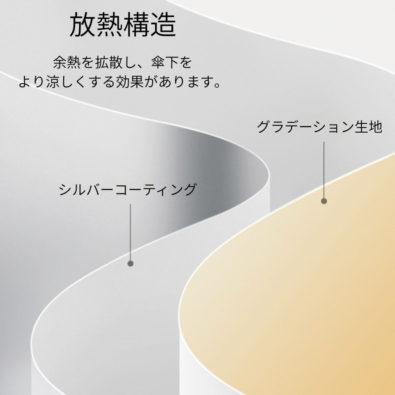 シルバーカラーのコーティングが紫外線と太陽熱を反射し傘下の温度を下げる効果があります。