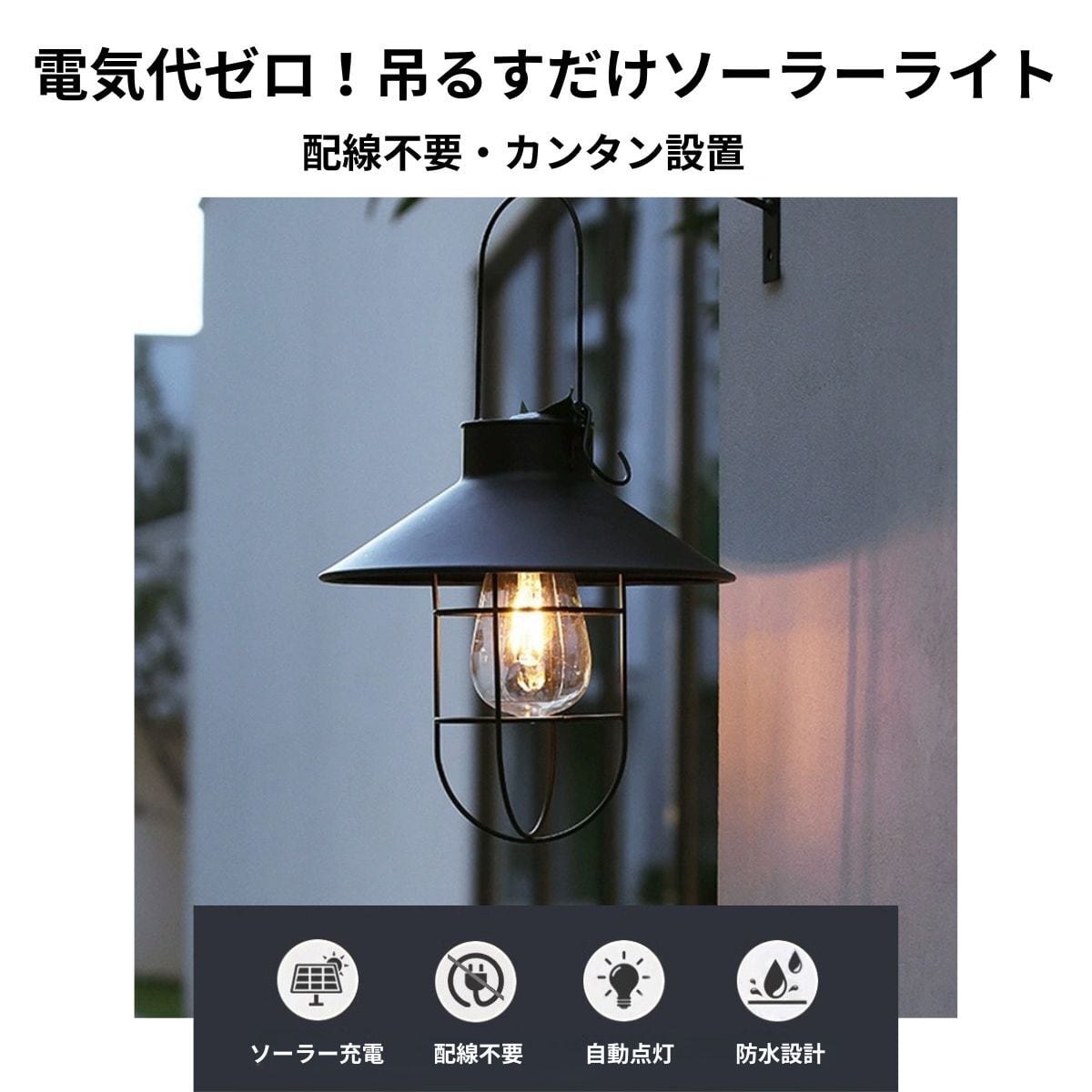 ソーラーライト 屋外 吊り下げ 防水 ガーデンライト おしゃれ 太陽光充電 自動点灯 省エネ 庭 玄関 ベランダ キャンプ 防犯