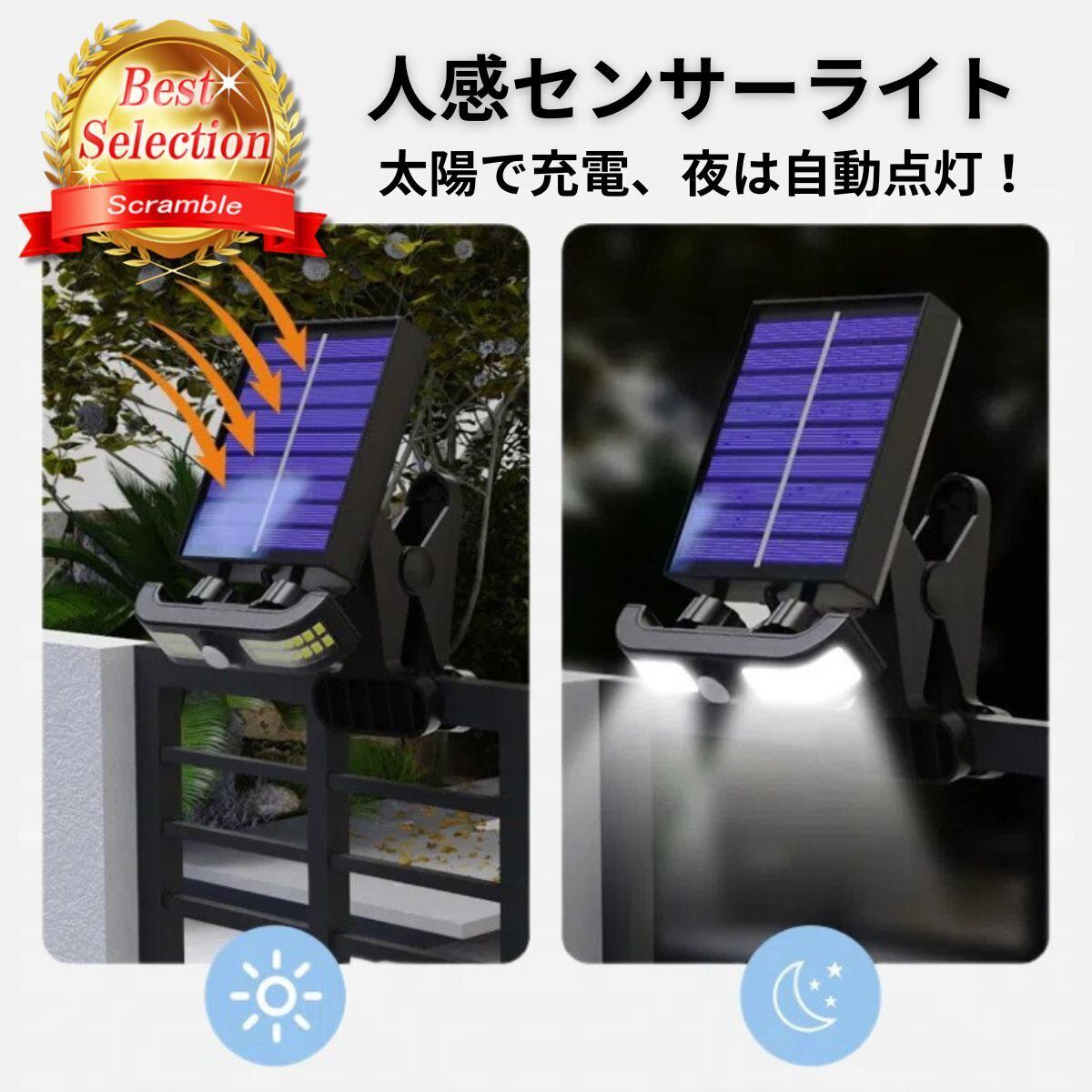 ソーラーライト 屋外 人感センサー 防犯ライト クリップ式 吊り下げ 防水 照明 省エネ
