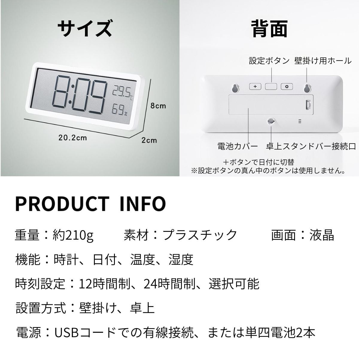 関連キーワード: デジタル時計 時計 温湿度計 温度計 湿度計 壁掛け 卓上 大画面 見やすい デジタル クロック 置き時計 壁掛け時計 温湿度表示 高精細 おしゃれ シンプル 北欧 インテリア リビング 寝室 オフィス 子供部屋 在宅ワーク USB給電 電池式 2WAY 電源 日付表示 静音 省エネ 薄型 軽量 横長 ホワイト ブラック モノトーン INS風 快適管理 室内温度 熱中症対策 乾燥対策 エアコン管理 ギフト プレゼント 新生活 おすすめ 人気 売れ筋 送料無料