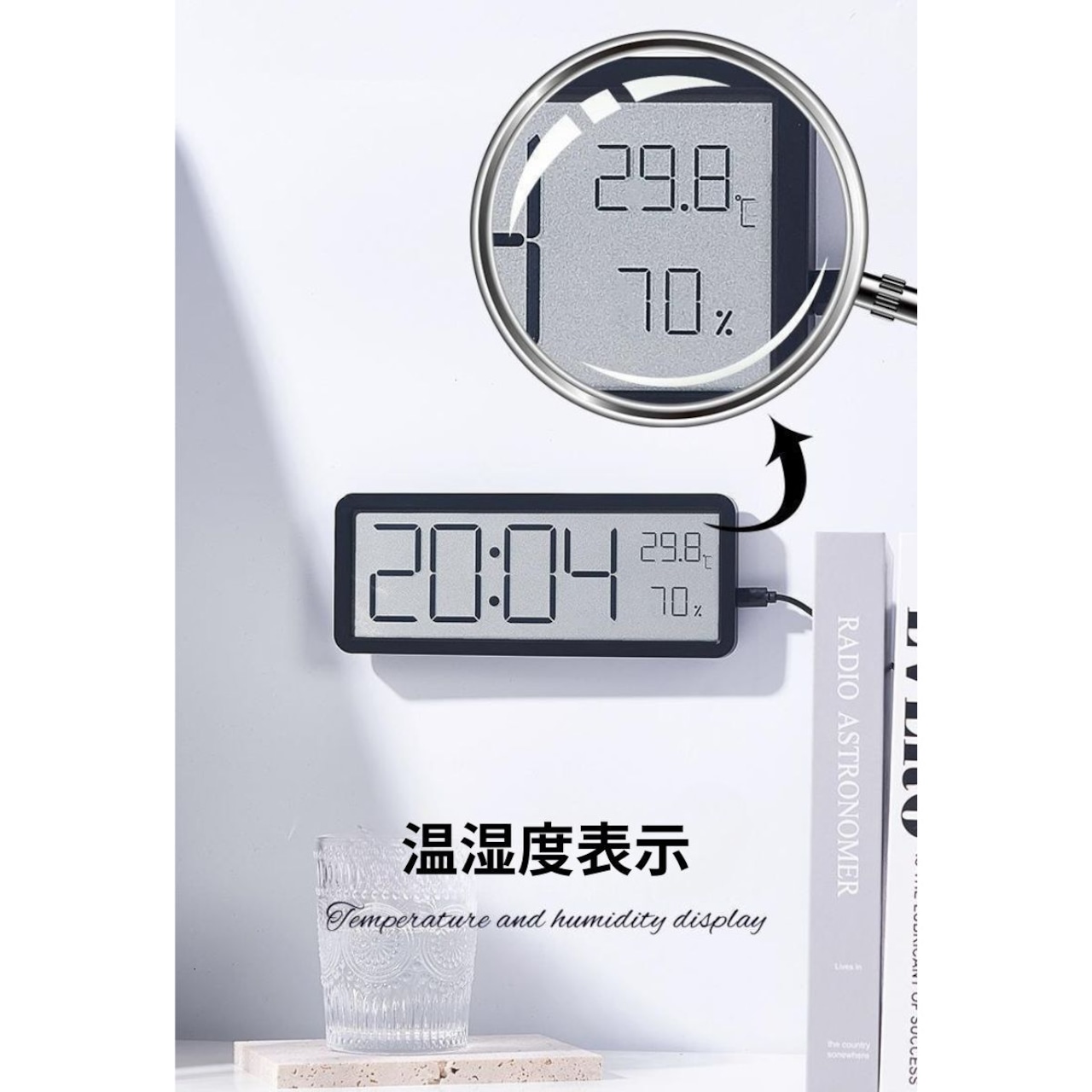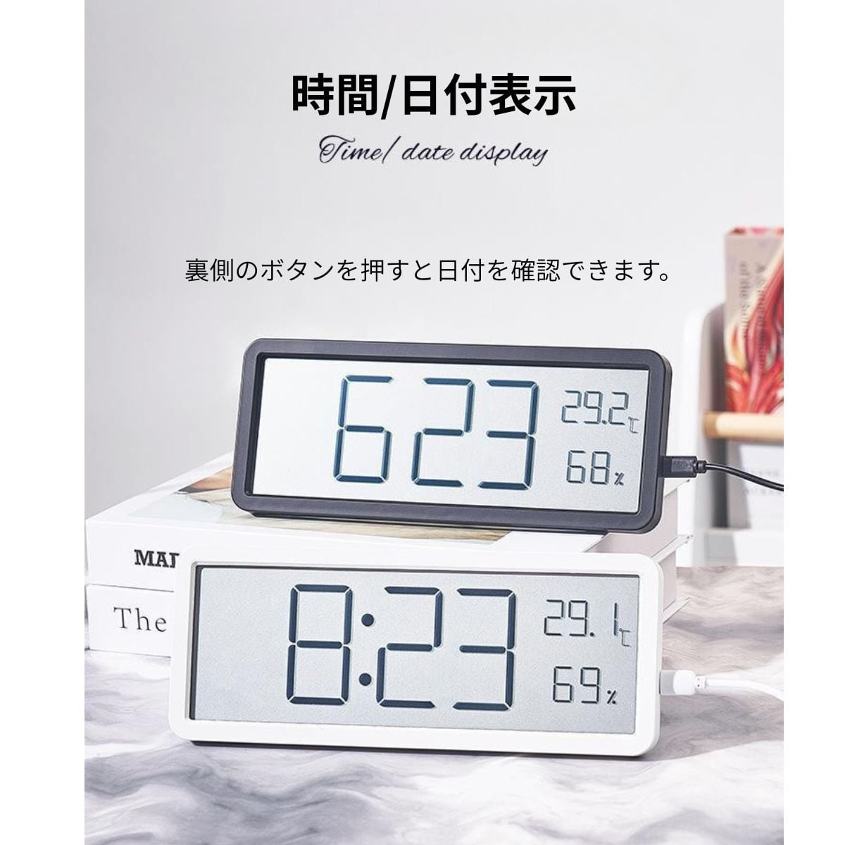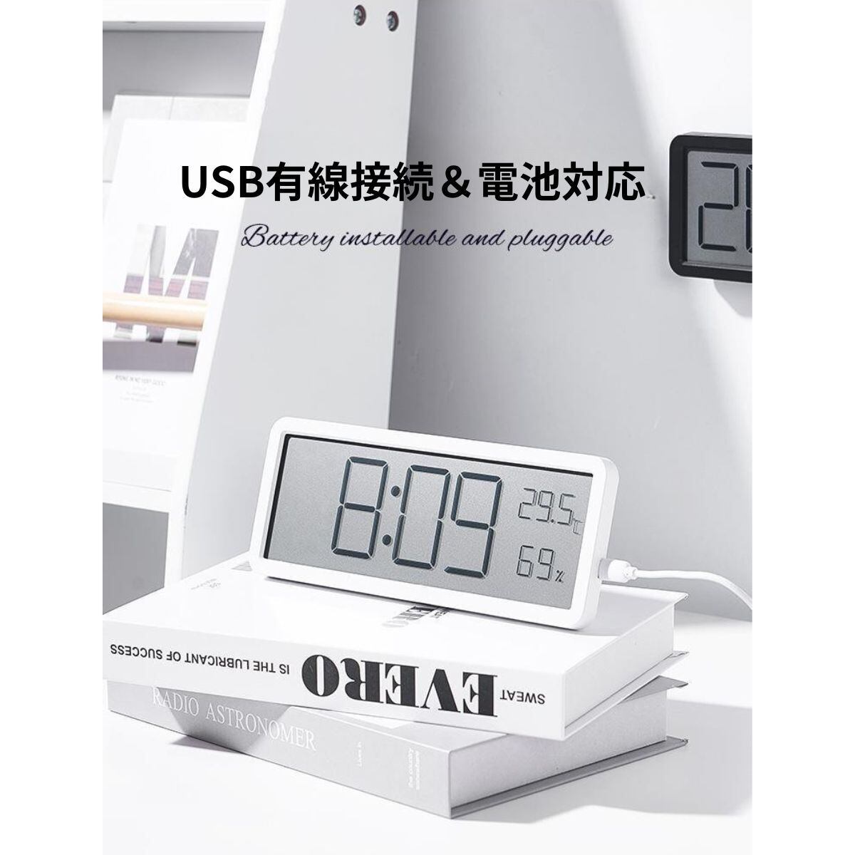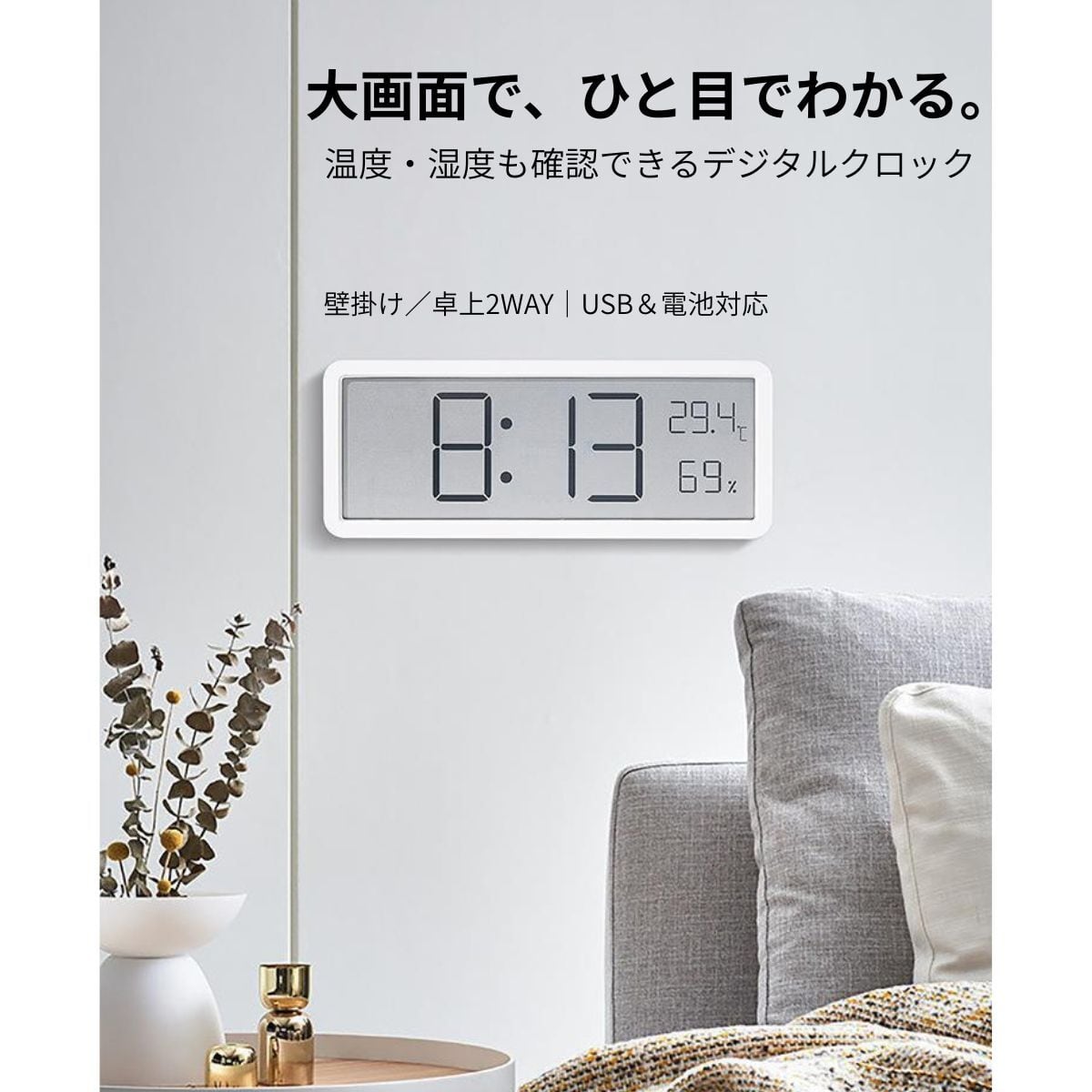 デジタル時計 温湿度計 壁掛け 卓上 大画面 USB 電池式 温度 湿度
