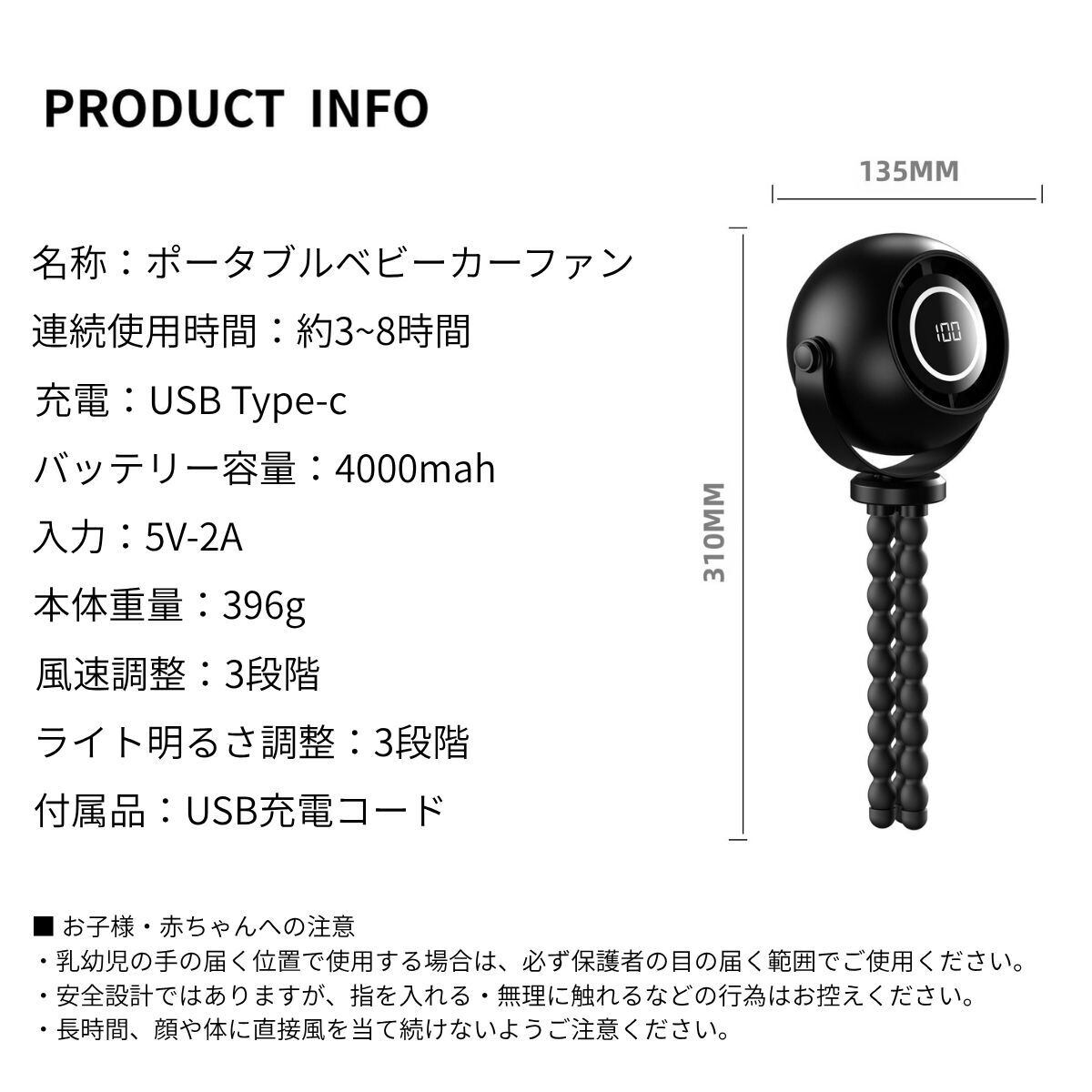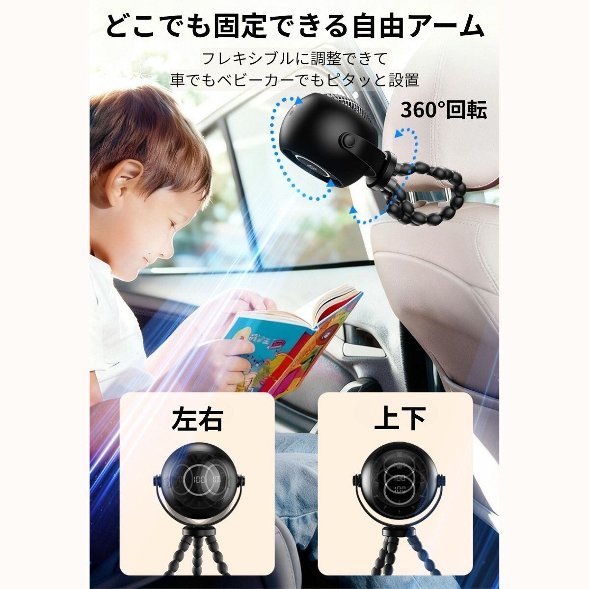 ベビーカー 扇風機 クリップ 小型 静音 USB充電式 赤ちゃん 車用 卓上 後部座席 おしゃれ ファン
