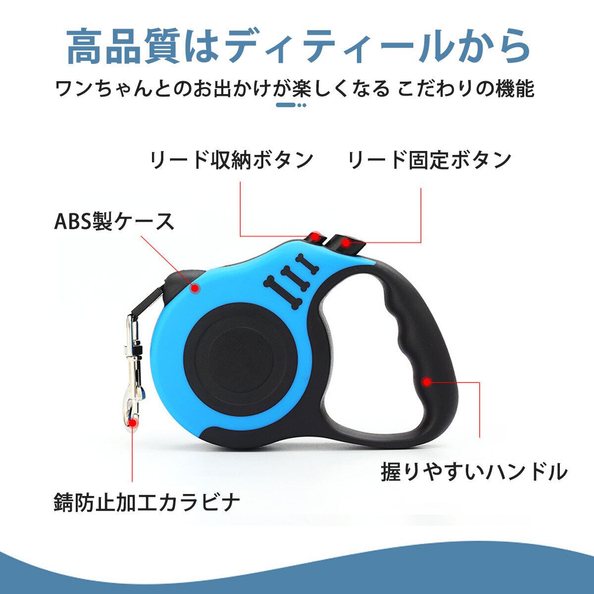 犬 リード 伸縮 5m ペット フレキシ おしゃれ 頑丈 中型犬 小型犬 伸びる カラビナ 軽量 軽い