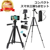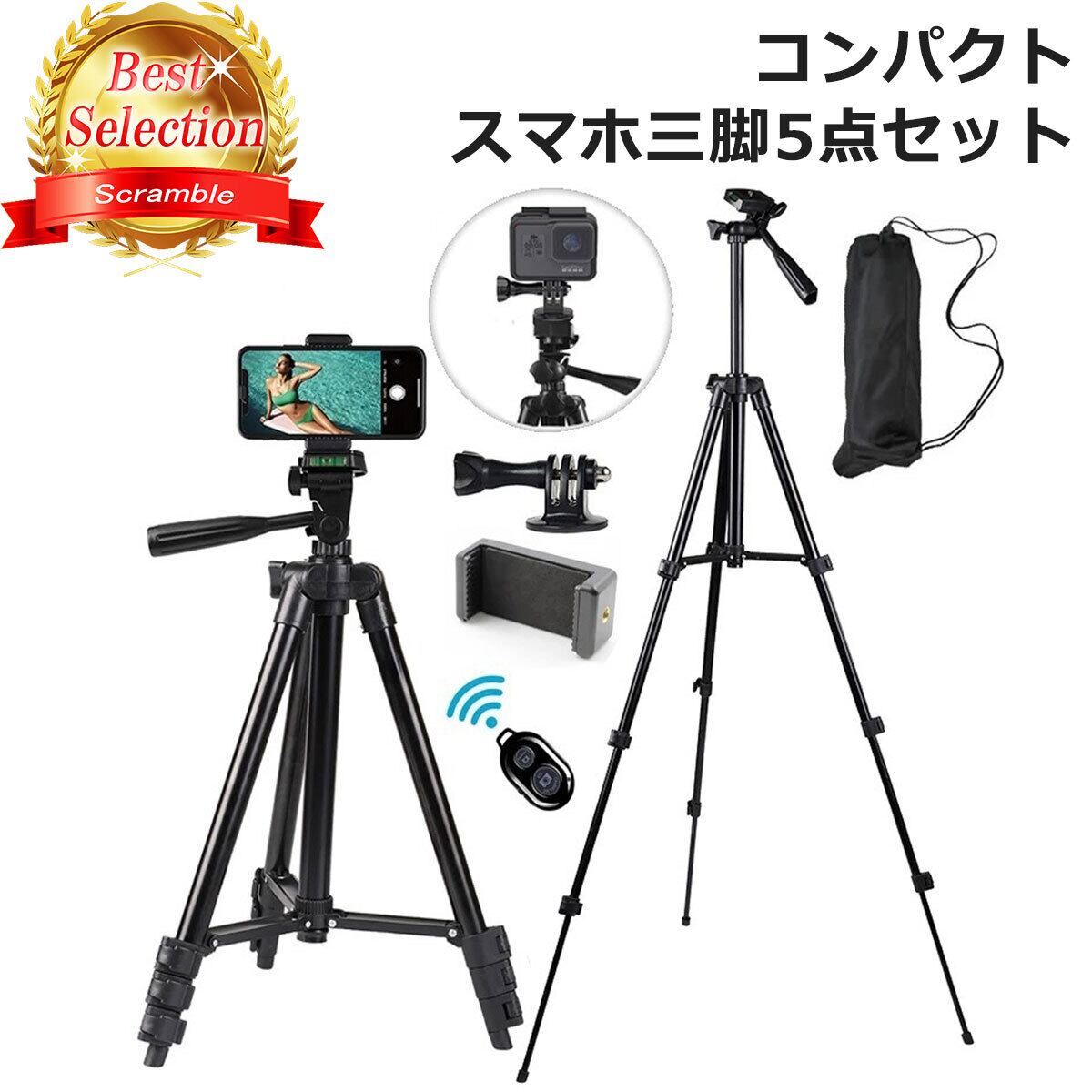 スマートフォン、ビデオカメラ、一眼レフ、GoProなどに対応したマルチ三脚充実の5点セット